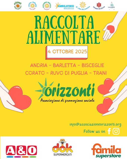 Un’iniziativa solidale nei supermercati della Bat, in collaborazione con il Gruppo Megamark, per sostenere le famiglie in difficoltà Torna nuovamente la Raccolta Alimentare promossa dall’Associazione Orizzonti, da oltre 15 anni…